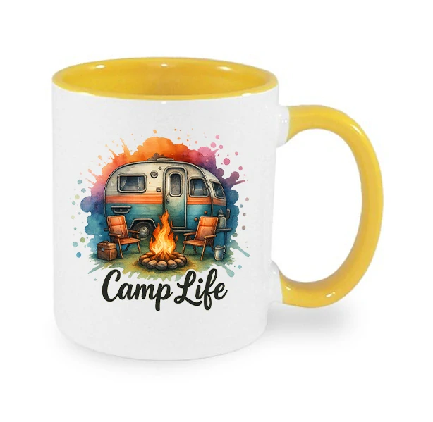 Každý doušek z tohoto hrnku voní po táboráku, dobrodružství a svobodě. Barevný splash design s karavanem a plápolajícím ohněm navodí tu pravou outdoor atmosféru i doma v kuchyni. 🎨 Barva:   bílá/červená | bílá/černá | bílá/růžová | bílá/zelená | bílá/modrá | bílá/žlutá | čistě bílá🧵 Materiál:  keram... celý popis