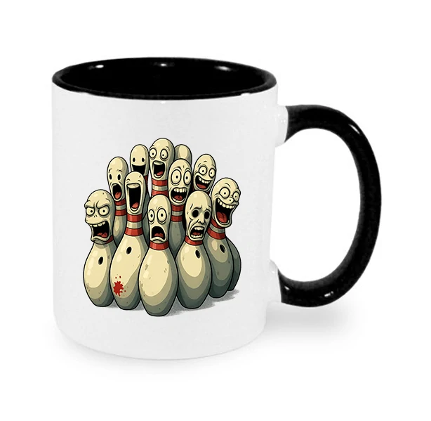 Připrav se na nejšílenější partii bowlingu vůbec. Tihle kuželky mají oči dokořán, křičí, prchají – a ty si u toho klidně vychutnáváš ranní kafe. Ideální dárek pro každého, kdo má rád černý humor, kreslený styl a bowlingovou nadsázku.