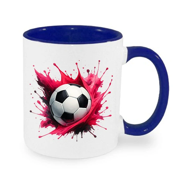 S explozí červené barvy, dynamickým splash efektem a klasickým fotbalovým míčem uprostřed je to ideální ranní náboj pro všechny fotbalové nadšence.
