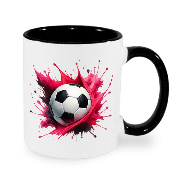 S explozí červené barvy, dynamickým splash efektem a klasickým fotbalovým míčem uprostřed je to ideální ranní náboj pro všechny fotbalové nadšence.