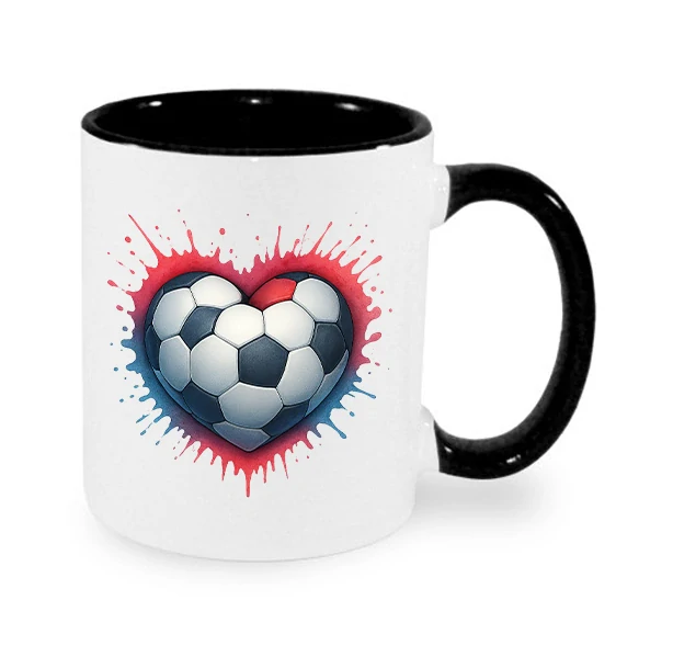 Srdce bijící pro fotbal. Ikonický design, kde se fotbalový míč stylizuje do tvaru srdce, obklopený splash efektem v barvách červené a modré. Ideální dárek pro ty, kteří milují fotbal nejen na hřišti, ale i v srdci.