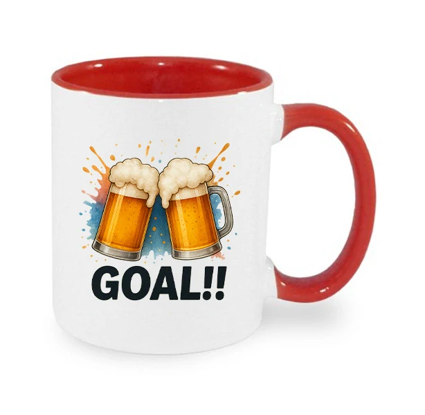 Když padne gól, nesmí chybět pořádný přípitek! Tento veselý hrnek s motivem dvou cinkajících pivních půllitrů je trefou do černého pro všechny, kdo fandí sportu s půllitrem v ruce.