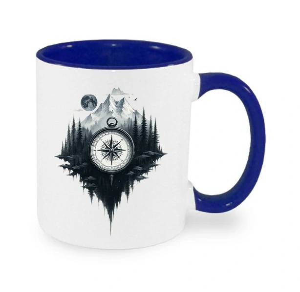 Pro všechny, kdo se nikdy neztratí – nebo se ztratit chtějí záměrně. Tento stylový černobílý hrnek s horským motivem a kompasem ti připomene, že cesta je cíl.