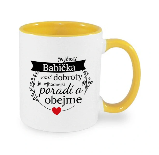 3. Hrnek "Nejlepší BABIČKA poradí a obejme"