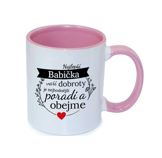 3. Hrnek "Nejlepší BABIČKA poradí a obejme"