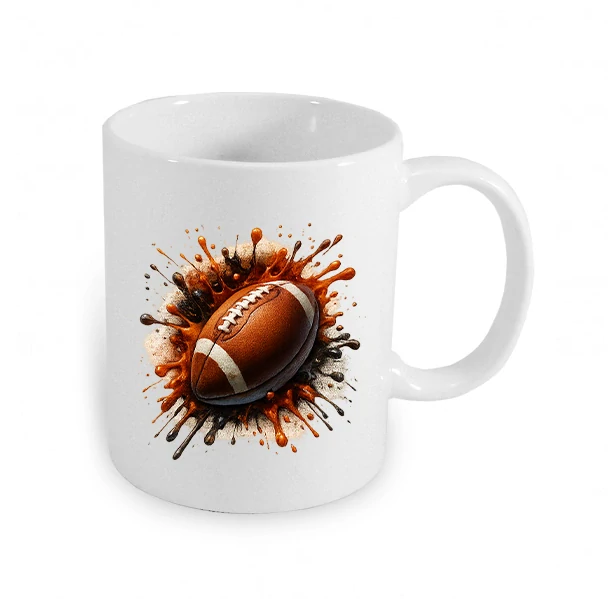 S motivem ragbyového míče v energickém červeno-černém splash designu vypadá, jako by explodoval přímo ze hry. Každý doušek chutná jako vítězný field goal.