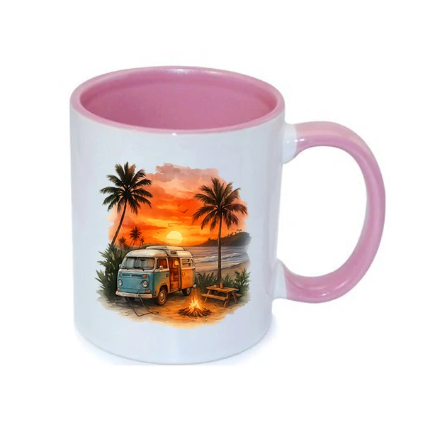 Zachyť letní pohodu v každém doušku! Tento hrnek s motivem retro dodávky zaparkované na pláži u ohně a západu slunce tě přenese přímo do teplého večera pod palmami. Ideální pro milovníky cestování, vanlife a mořské atmosféry.