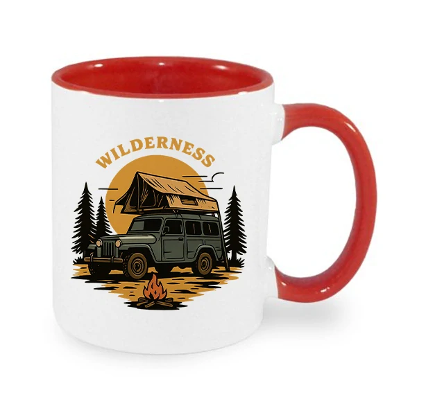 Víc než jen hrnek. Je to životní styl zabalený do porcelánu – auto se stanem, borovice, oheň a divočina.