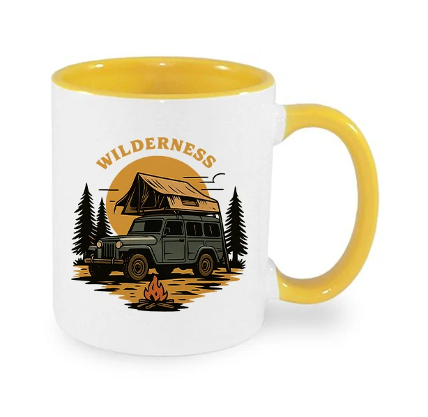 Víc než jen hrnek. Je to životní styl zabalený do porcelánu – auto se stanem, borovice, oheň a divočina.